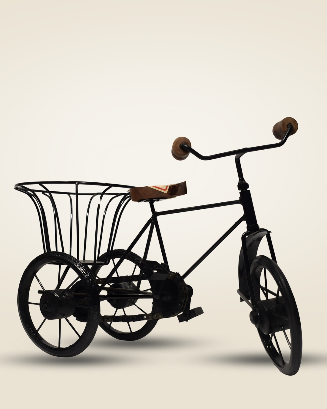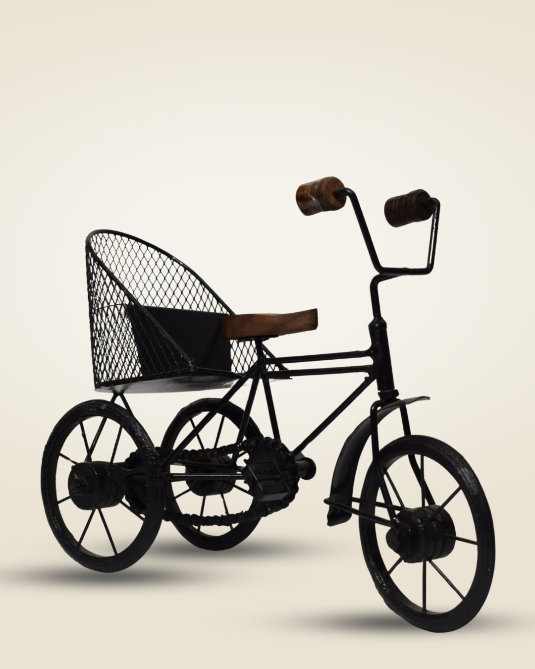 Handcrafted Metal Cycle Toy with Rear Basket